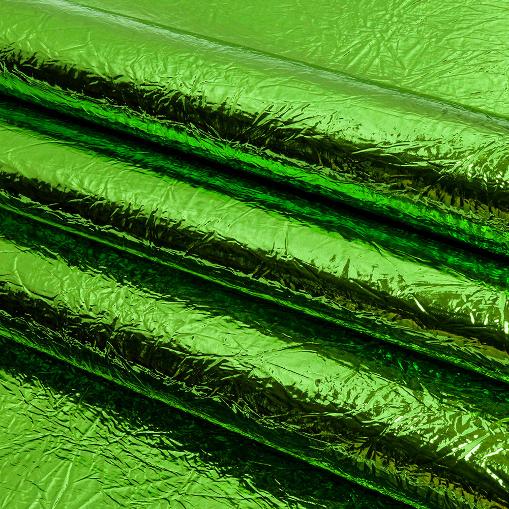 Crinkled Mirror Vinyl with Fabric Backing - Green - Ingot Collection