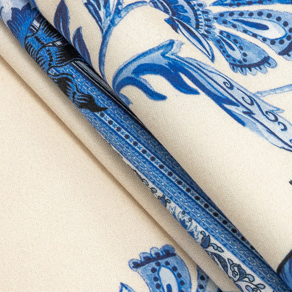 Stretch Cotton Sateen - Blue Floral Stripes - Mood Exclusive Palazzo dei Fiori Print